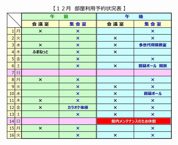 12月14日(日)は館内メンテナンスのため、午後休館となります。
