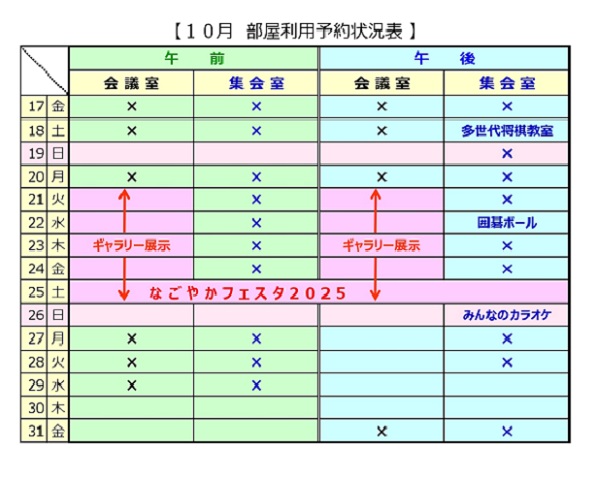 - 10月の予定表、部屋予約状況を掲載しました。